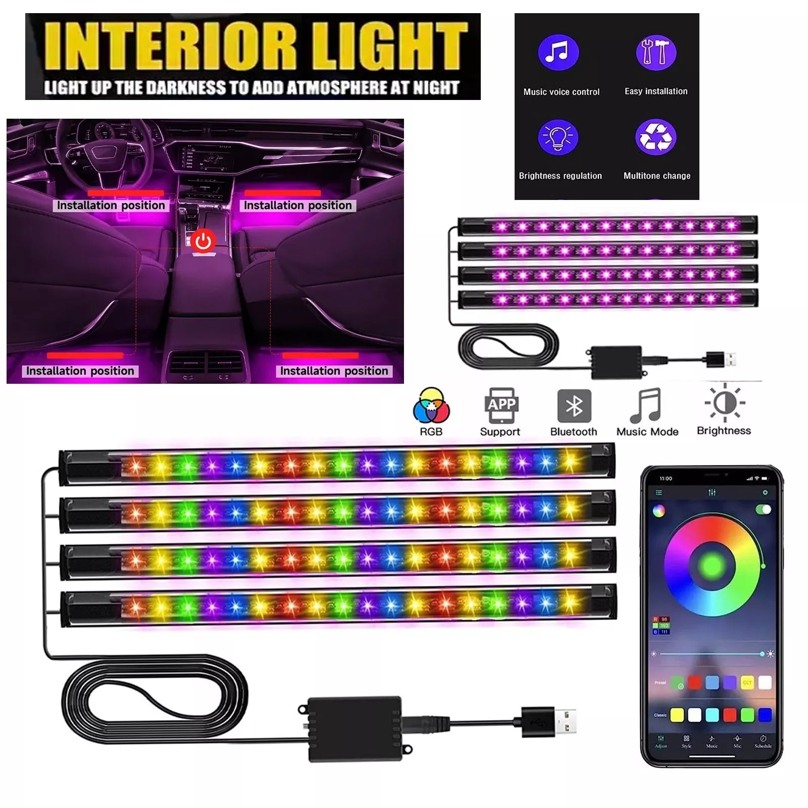Car LED Interior Lights Strip Ambient Lighting Usb Port Bluetooth App Control